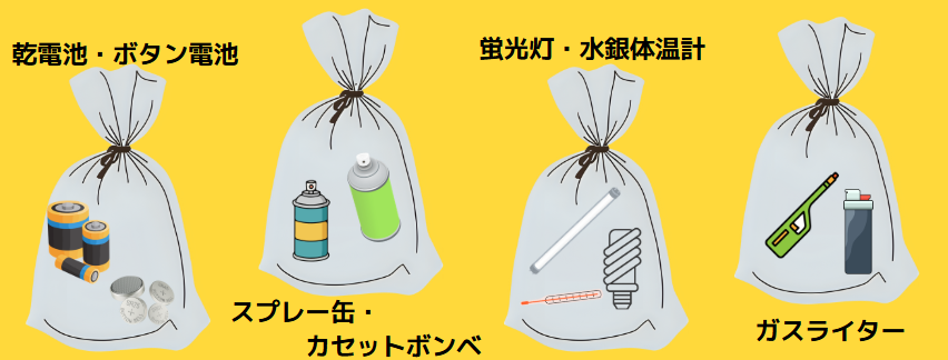 これまでの「有害・危険ごみ」という名称は「危険」という単語の印象から刃物などが混入していたことから併せて「有害ごみ」と名称変更します。