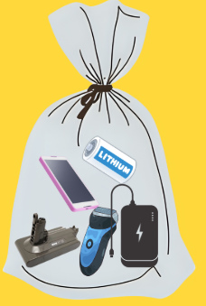 Q3:どのように出せばいいのですか? | A3:有害ごみの出し方と同様に品目ごとに中身がわかる袋(透明・半透明)でリチウムイオン 電池等をまとめて出してください。 ※電極部が露出している時はビニールテープなどで絶縁処理してください。 |