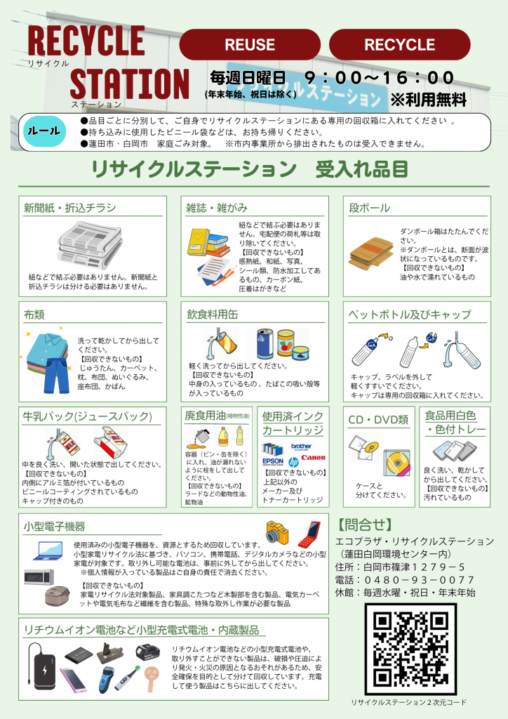 ごみの減量化とリサイクルを一層取り組むために、市民の方が直接資源物を持ち込むことができる拠点回収場所として、環境センター内にリサイクルステーションを設置しています。ぜひご利用ください。
